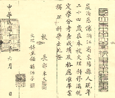 上圖為國立東南大學畢業證書(第一號嚴濟慈)