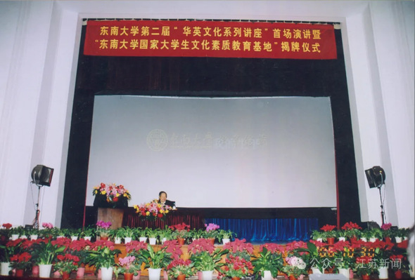 2006年10月30日,84歲高齡的楊先生再度蒞臨,出席“第二屆華英文化系列講座”。 他不僅欣然為“東南大學國家大學生文化素質教育基地”揭牌,更在承載著歷史的東大大禮堂,為3000余名師生作了題為《我的生平》的精彩演講。他以平實而深邃的語言,將個人命運與科學演進、國家發展緊密交織,展現了一位科學家的宏大視野與家國情懷。互動環節中,他耐心解答了學子們關于宇宙認知、大學教育、人文與科學的關聯及前沿知識獲取等諸多困惑,更結合自身經歷傳授治學心法:“做研究,要想取得事半功倍的效果,一定要有前瞻性,選擇最有發展空間的領域。”