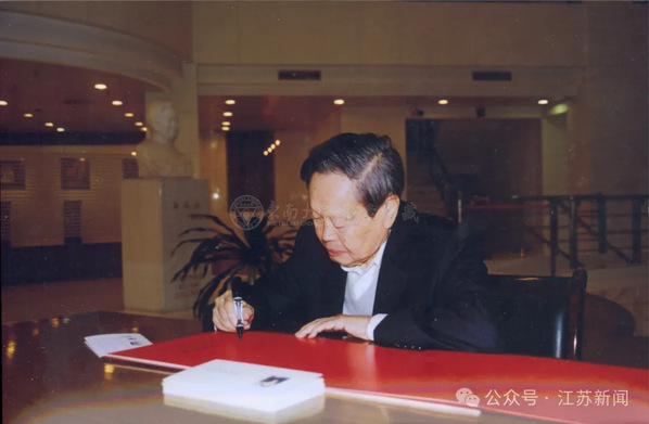講座結束后,楊振寧專程前往校園中央的吳健雄紀念館——這是我國首個海外華人科學家紀念館。他仔細端詳每一件展品,睹物思人間感慨萬千,他揮筆題詞:“吳健雄是當代大實驗物理學家,東南大學為她建造的紀念館非常好。”表達了對這位杰出女性的崇高敬意與深切緬懷。