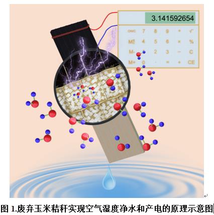 [Southeast University News Network, May 15] (Correspondent: Gong Feng)A few days ago, the clean energy team led by Professor Xiao Rui from the School of Energy and Environment of Southeast University utilized waste biomass straws to purify water and generate electricity efficiently in the air, and has thus utilized waste biomass in a brand-new and efficient manner. The simple pretreatment of waste cornstalks can recycle pure water from the air under a full humidity environment and generate DC voltage continuously that can further drive electronic devices such as electronic calculators. This has provided a new research direction to interdisciplinary subjects such as biomass utilization and micro-energy recycling (Fig. 1). Relevant achievements were published in Nano Energy, a top journal in the field of micro-energy with the title of “Agricultural Waste-derived Moisture-absorber for All-weather Atmospheric Water Collection and Electricity Generation”, which was uniformly acclaimed by the reviewers. Southeast University is the first author and the first communication institute, Professor Xiao Rui is the corresponding author, young teacher Gong Feng and undergraduate student Li Hao are the co-first authors of this paper.